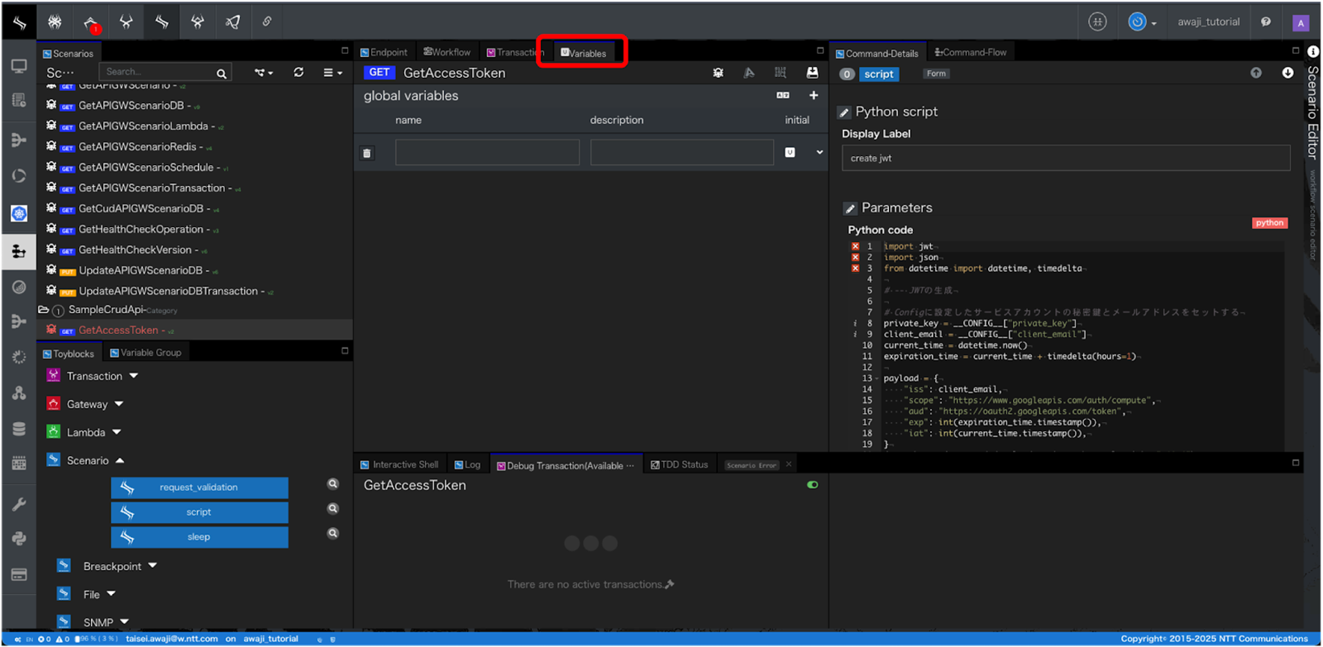 Compute Engine APIを実行する際に、まずアクセストークンを取得する必要があるため、アクセストークンを取得するシナリオを作成します。