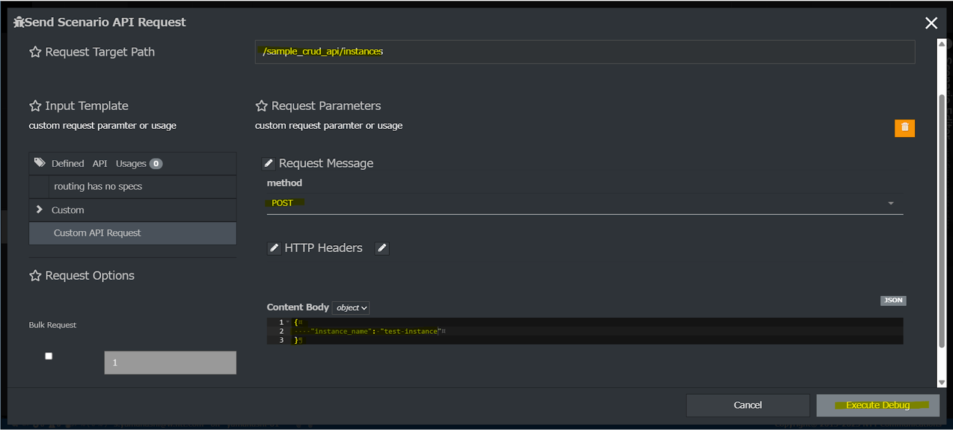 このテストはUPDATE APIに対するテストのため、UPDATE対象のデータを事前に用意しておきます。
