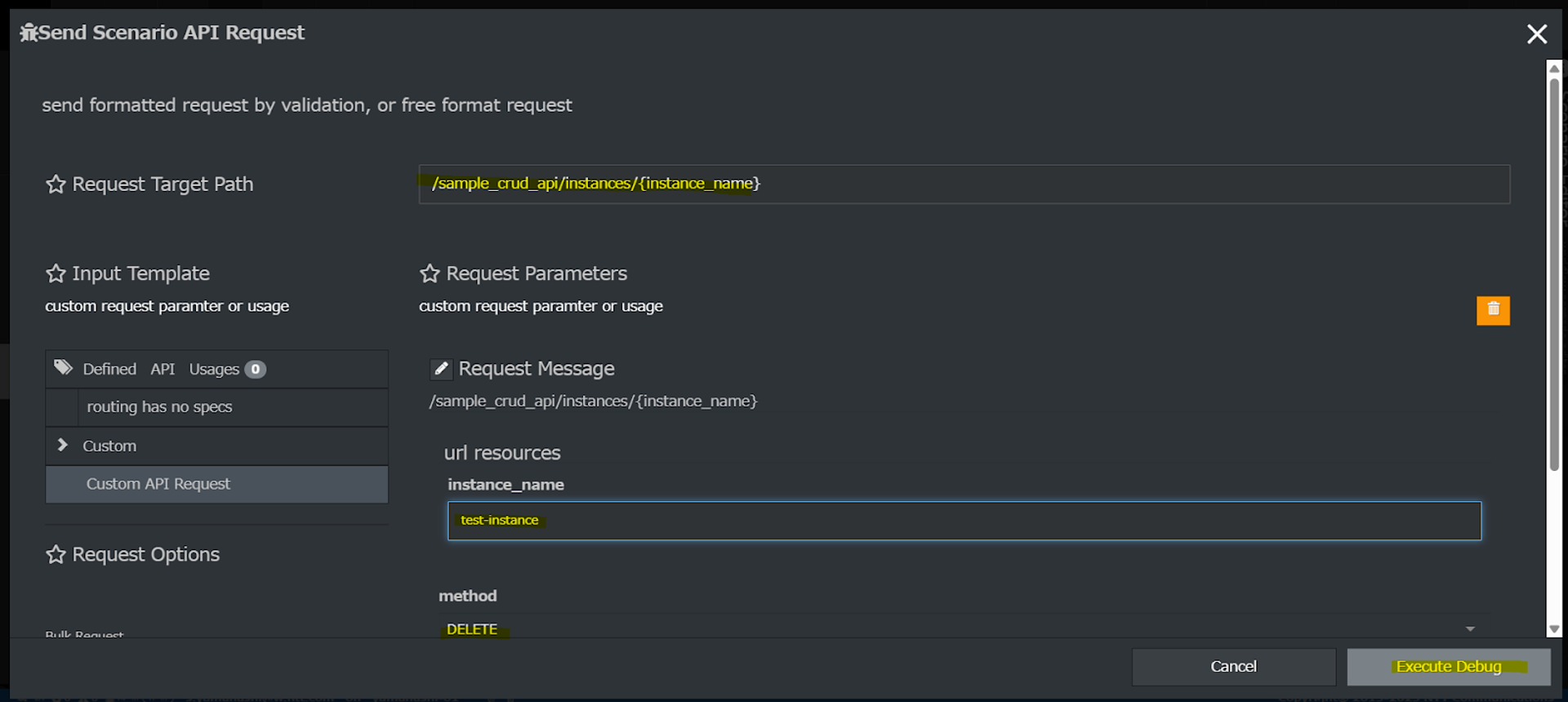 DELETE | 該当のComputeEngineインスタンスを削除する | /sample_crud_api/instances/{instance_name} | DELETE | - | 200 OK |