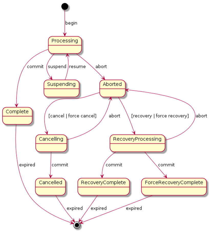DELETE APIはロールバックを許可していないため、トランザクションのステータスはAbortedのままになるはずです。
