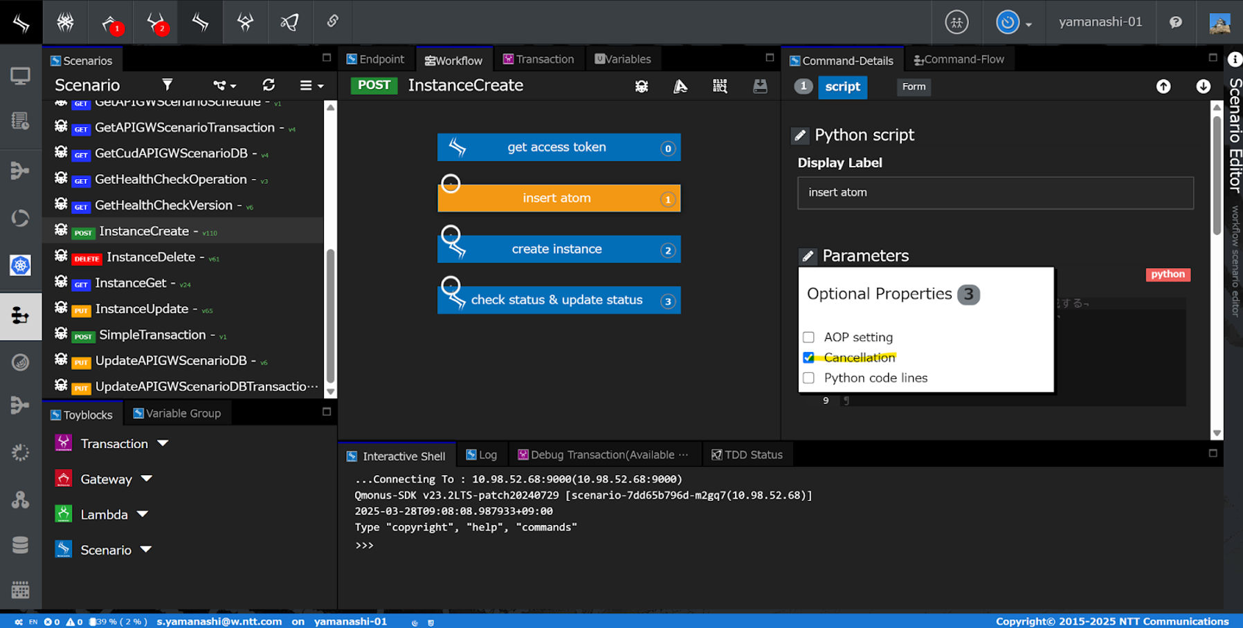 このテストケースはUPDATE APIが途中で失敗し、ロールバックとなる場合のテストになります。そのため、最終的にトランザクションのステータスがロールバックが正常に完了した場合のステータスであるCancelledであるかどうかを確認します。