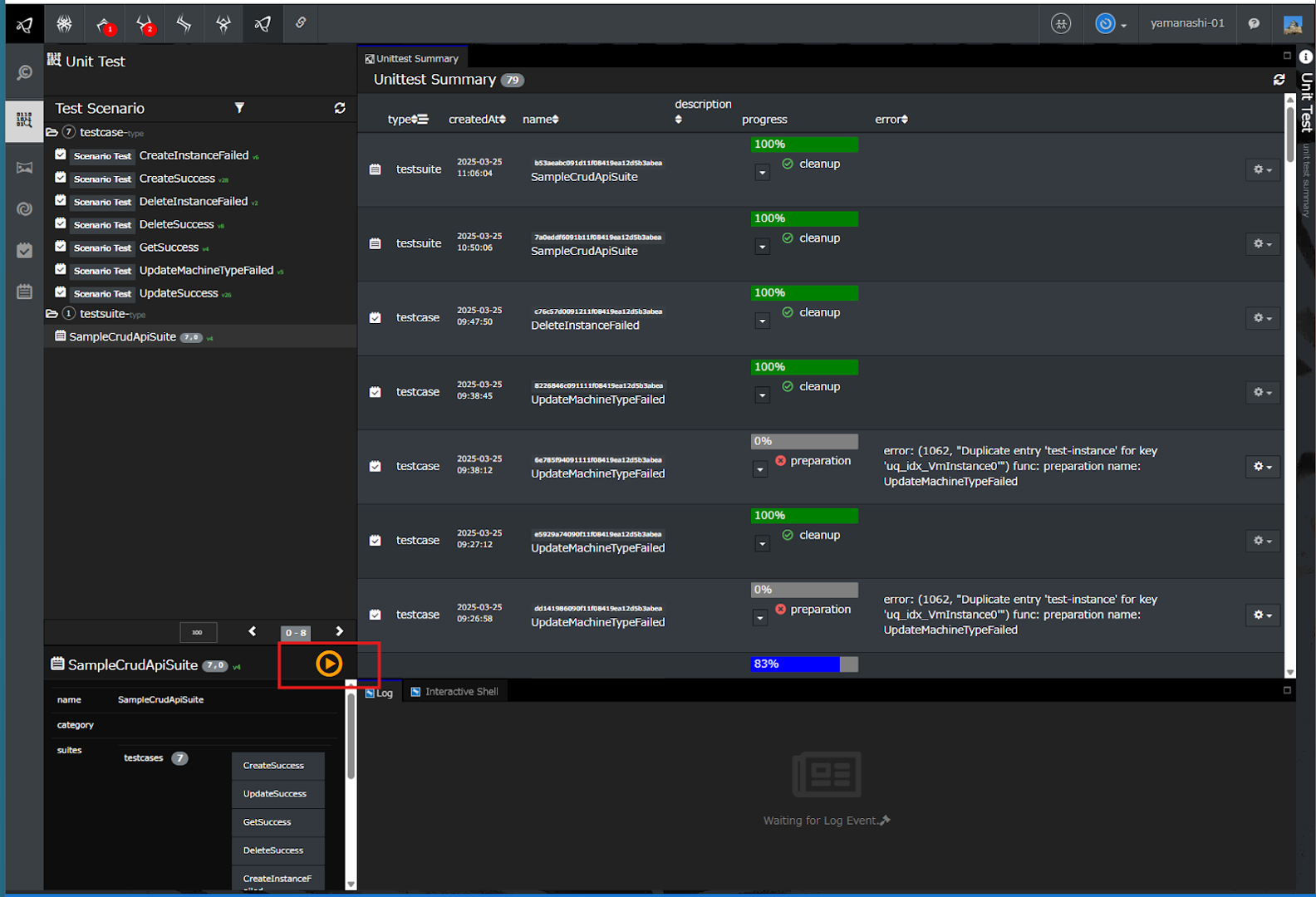 SampleCrudApiSuiteを選択し、実行ボタンを押下して実行してみましょう。